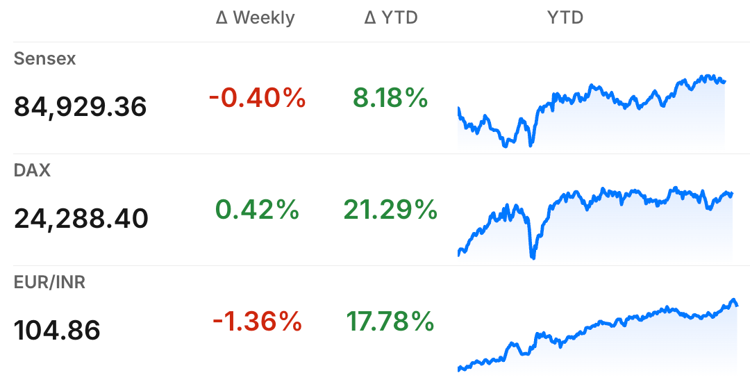 The German market had a positive week with the DAX closing at 24,288.40, marking a weekly gain of 0.42%. The index showed resilience after some mid-week volatility, with Friday's session seeing a strong 0.40% gain. Leading the Friday rally were Commerzbank, MTU Aero Engines, and Bayer.